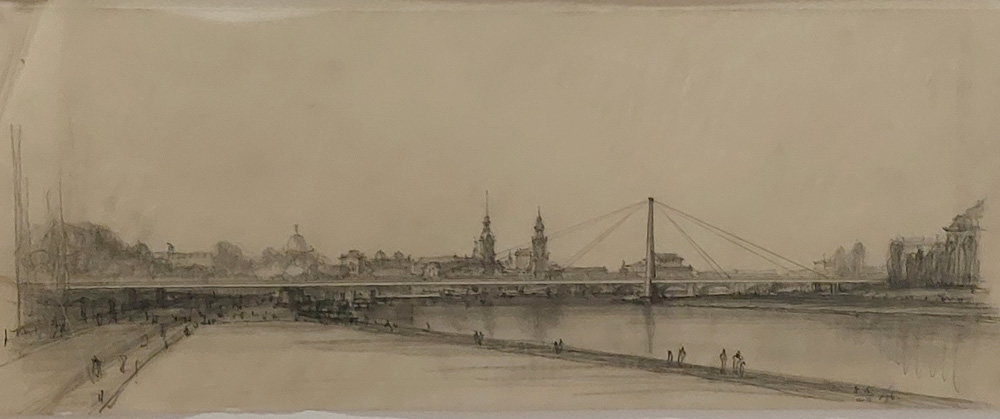 1. Preis Wettbewerb Dr.-Rudolf-Friedrichs-Brücke (Carolabrücke) 1964 Eckhart Thürmer u. Willi Spoelgen vom VE Projektierungsbüro Straßenwesen Dresden, Bild: Stadtplanungsamt Bildstelle/ Stadtarchiv Dresden,