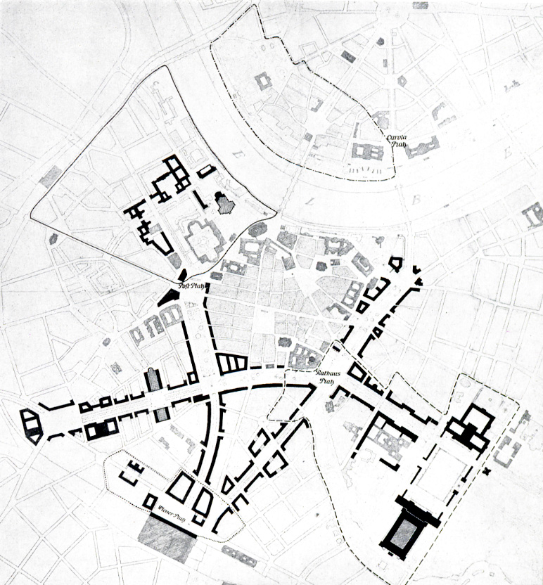 Finanzierung und kritische Stimmen | 1946, Conert-Plan „Vorentwurf für die Neugestaltung der Innenstadt Dresden“ |