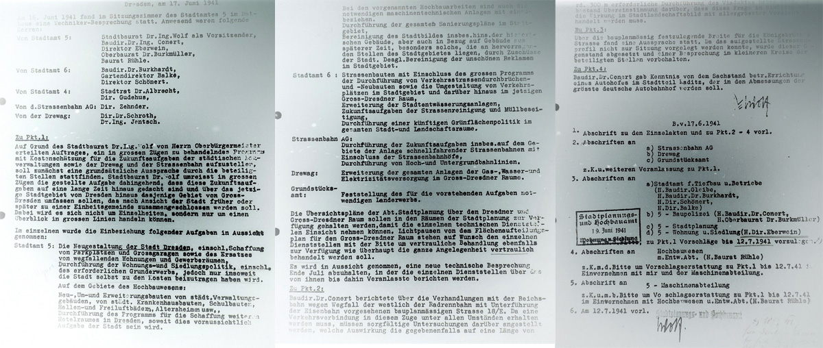 Protokoll vom 17.06.1941, In: Akte Dezernat Aufbau 25, "Durchführungsstelle für die Neugestaltung der Stadt Dresden", Stadtarchiv Dresden 102) Siehe: Christiane Wolf, Gauforen, S. 24 und Fußnote 21, 22 S. 236 f. mit Quellenangaben |