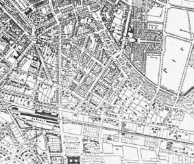 Der Ausschnitt eines Planes von 1874 zeigt den östlichen Teil der ehemaligen Seevorstadt mit der Bürgerwiese, dem Böhmischen (später Haupt-) Bahnhof und der Prager Straße.