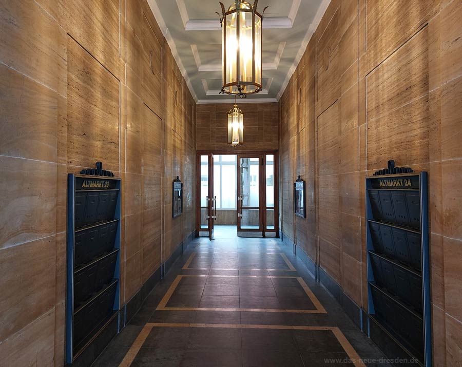 Hausflur Attmarkt 23-24 mit Travertinwand-verkleidungen und