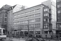 Erwartungen eindeutig höher schrauben. Der nun aber fertig gestellte Anbau bietet tatsächlich vom Äußeren einen mehr als enttäuschenden Eindruck. Es ist an dieser Stelle nicht gelungen, die einstige Propaganda-Straße in einen Boulevard mit eigener Ausstrahlung umzuwandeln. Dazu tragen nicht nur die viel zu schmalen Bürgersteige und das fehlende Grün bei. Es stört vor allem die mangelnde Differenzierung der extrem langgestreckten Bauzeile, die noch den Advanta-Riegel von Tesar in den Schatten stellt. Die städtebauliche