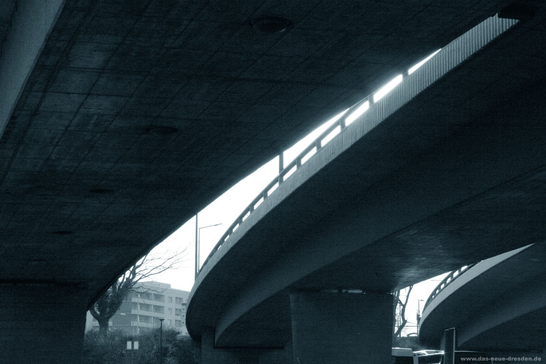 Aktuell: Positionierung zur Wiedererrichtung der Carolabrücke in Dresden, 5. Februar 2025 Neubau muss 2026 beginnen – Dresdner Wirtschaft fordert klare und ambitionierte Perspektive für den Wiederaufbau Link zum Offenen Brief: www.hwk-dresden.de u.a. "Verzicht auf langwierige Diskussionen über die Gestaltung: Der Neubau muss pragmatisch und funktional geplant werden, ohne Verzögerungen durch Debatten über optische Details." Die Carolabrücke muss komplett abgerissen werden. Die Details aus dem Gutachten Brückenexperte Steffen Marx hat im Stadtrat sein Gutachten zur Carolabrücke vorgestellt. MDR vomn 12. Dezember 2024 Einsturz des Brückenzuges C am 11.09.2024 Der Brückenzug C (stromabwärts gelegene Straßenbahntrasse und Fußweg) ist in der Nacht am 11. September 2024 genau zwischen den Brückenpfeilern auf einer Länge von 100 Metern eingestürzt. Nach dem die beiden Autotrassen (Brückenzug A und B) der Carolabrücke gerade fertig saniert waren, sollte der dritte Brückenzug C ab 2025 saniert werden. Bei der beendeten Sanierung der Autotrassen A und B wurde Carbonbeton verwendet, von dem sich in Zukunft viele Vorteile erhofften. Infos dazu: "Carbonbeton für die Carolabrücke" vom 21.01.2021: www.bauenimbestand24.de Nähere Infos zur Carolabrücke auf: www.dresden.de "Die Carolabrücke zwischen Augustus- und Albertbrücke wurde 1892- 95 von H. Klette und K. Manck errichtet. Dieses 500 m lange Bauwerk war eine Kombination von Stein- und Eisenträgerwerk, das nur mit 2 Strompfeilern die Elbe überspannte. Erhalten sind lediglich die 1907 von Friedrich Offermann geschaffenen Reiterplastiken (Nereide und Triton) am Altstädter Brückenkopf. Nach irreparablen Kriegsschäden (*) wurde die Brücke 1967-71 von Eckart Thürmer, Rolf Berger und Michael Franke mit einer Gesamtlänge von 120 m im Strombereich die längste Spannbetonkonstruktion der DDR." (Architekturführer Dresden, 1997) * = unkorrekte Angabe. Die Brücke wurde nicht durch "den Krieg" zerstört, sondern durch fanatische Zerstörungswut von SS-Kommandos erst am 7.Mai 45, einen Tag vor Kriegsende, gesprengt. Diese sinnlose Aktion zur Verteidigung der "Festung Dresden" sollte die heranrückende Rote Armee aufhalten, was nicht gelang und letztlich das Alltagsleben der Stadt über Jahrzehnte erschwerte. Voutenträger - Balkenbrücke Die neue Elbbrücke zwischen Carolaplatz und Rathenauplatz ist das Ergebnis eines 1964 ausgeschriebenen Wettbewerbes, den das Team Thürmer u. Willi Spoelgen gewann. Beim näheren Betrachten fällt die Eleganz der Schwingung dieser schönen modernen Brücke auf. In rasanten Kurven flutet der Verkehr von der Alt- zur Neustadt - eine gelungene architektonische und ingenieurtechnische Leistung. Drei verschiedene Stränge verbinden Auto- und Straßenbahnverkehr + breite Fußwege in einer erträglichen Breite. Für die schmalen stromlinienförmigen Pfeiler wurde, wie schon bei der Autobahnbrücke von 1936, eine Verkleidung in rotem sächsischen Granit verwendet. Die Stränge bestehen aus Hohlkästen und Spannbeton- Durchlaufträger. Mit insgesamt 375 Metern war die Carolabrücke die größte Spannbetonbrücke der DDR. In der langen Planungsphase gab es verschiedene Varianten, eine davon mit einem sehr hohen Pylon (90 Meter) als Schrägseilbrücke, 1960 vom ehem. Chefarchitekten Dresdens Herbert Schneider entworfen (Entwurf im Landesamt für Denkmalpflege Sachsen). Nach zähen Diskussionen entschied man sich jedoch für ein niedriges Bauwerk (ohne hohe Trägermasten, Pylon etc.), die den freien Blick auf die berühmten Elbsilhouette nicht beeinträchtigen. Zeichnung: Jan. 1967 ![]() |