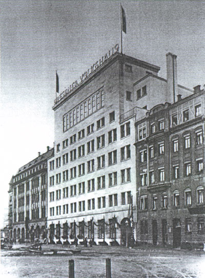 Volkshaus nach Osten. Dieser blockartige voluminöse Anbau mit