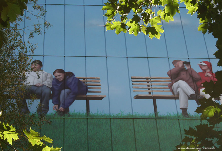 "Weitblick" von Strauss & Hillegaart für die Wohnungsgenossenschaft "Glück auf" Süd Dresden e.G.2003/ an einem sanierten Plattenbau (Zellescher Weg), Foto: 2012 TK