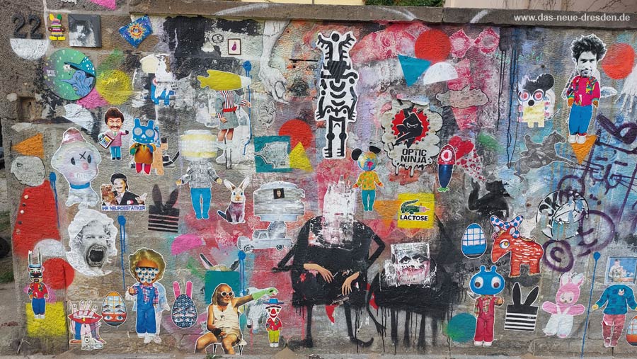 Inneren Neustadt. Mischung aus Graffiti mit Papierapplikationen.