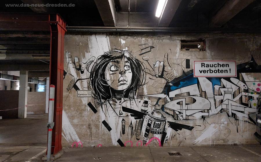 Street Art in der Tiefgarage unter der Prager Zeile, Foto: