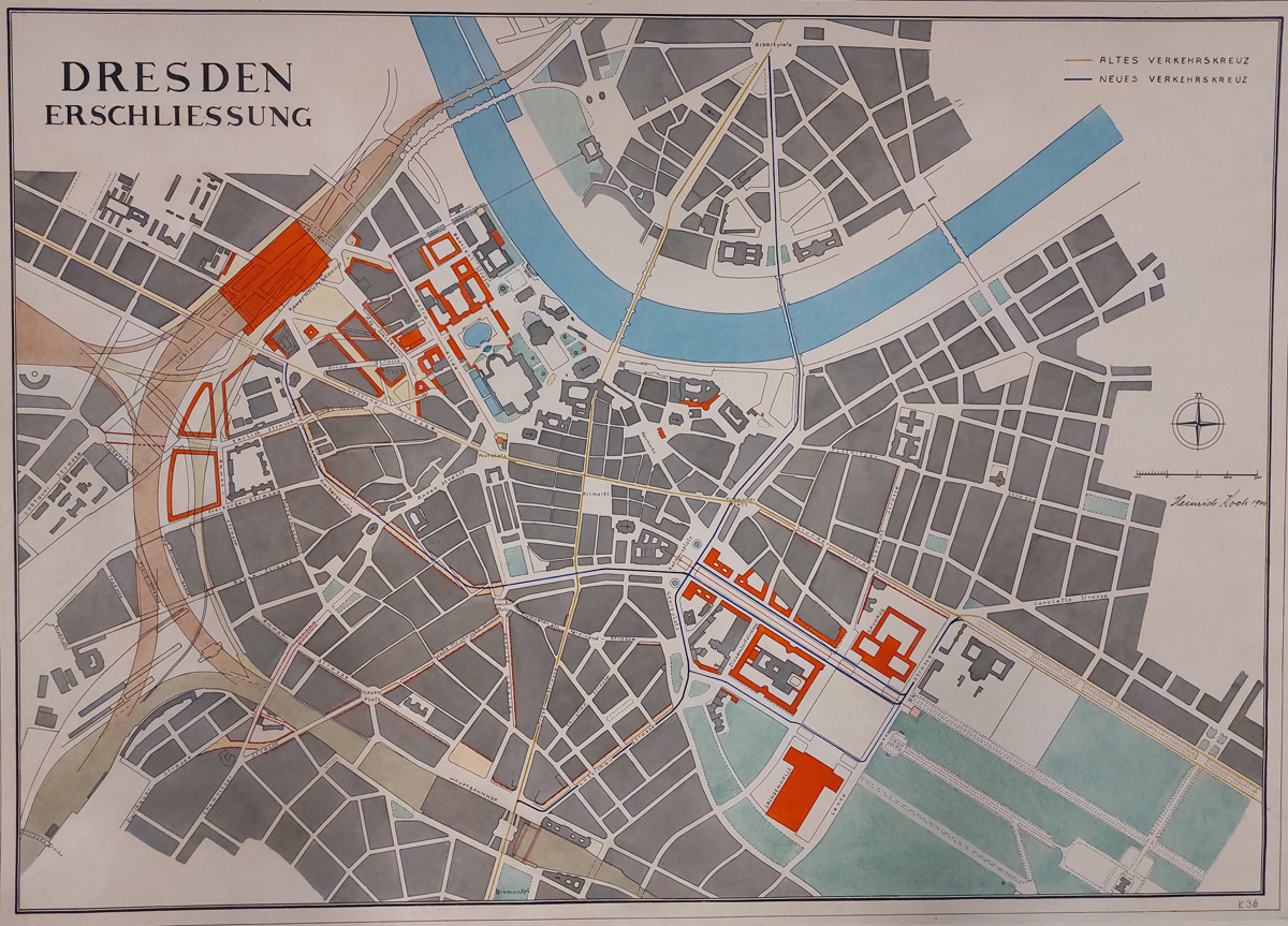 Finanzierung und kritische Stimmen | 1946, Conert-Plan „Vorentwurf für die Neugestaltung der Innenstadt Dresden“ |