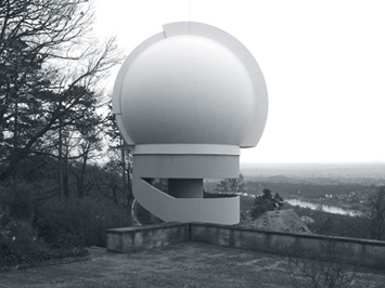 Diese moderne Sternwarte im Garten von Manfred von Ardennes Privatvilla ist mit ihrer markanten Kugelform eine außergewöhnliche Kleinarchitektur von überregionalem Wert. Als Solitär exponiert an der Hangkante errichtet, komplett freistehend, ist die leuchtend weiße Kugel unübersehbarer Teil des Loschwitzer Elbhangs. In ihrer skulpturalen Ästhetik ähnelt sie einer futuristischen Raumkapsel. Der Bau stellt damit ein herausragendes Beispiel der ostdeutschen Space-Age-Architektur jener Zeit dar. Zudem war und ist die Kugel ein Statement für Fortschrittsglauben und Wissenschafts-begeisterung. Sie fungierte in ihrer Modernität als Aushängeschild für das größte private Forschungszentrum innerhalb des ehemaligen Ostblocks. In seiner Autobiographie berichtete von Ardenne über die beiden Sternwarten in seinem Institut: Die Sternwarte Plattleite 27 und Zeppelinstraße 7 Ende 1956 ließ ich auf dem Institutsgelände an der Plattleite eine kleine Sternwarte mit drehbarer 4-m-Kuppel errichten, in der ein aus der Sowjetunion mit zurückgebrachter 20-cm-Zeiss-Refraktor aufgestellt wurde. Zehn Jahre später kam dann die in der Zeppelinstraße 7 am Elbhang gelegene größere Sternwarte mit 7-m-Kuppel und 25-cm-Zeiss-Refraktor hinzu, die vorzugsweise wissenschaftlichen Aufgaben diente. Die Betrachtung von Planeten, Kugelsternhaufen und der größeren Nebelflecke in Teleskopen dieser Abmessungen ist einer der besten Wege, um dem Menschen die gewaltigen Maßstäbe des Kosmos naher zu bringen und ihn innere Bescheidenheit zu lehren. (1) |
